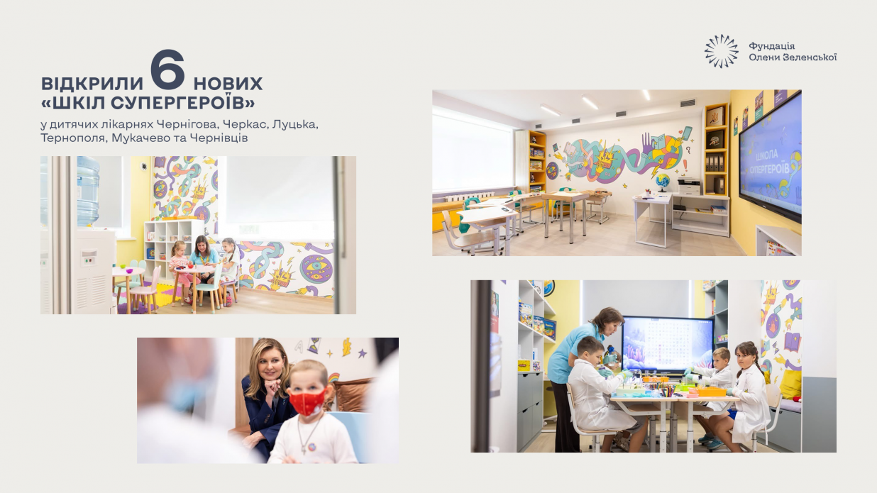 Фундація продовжила розвиток мережі освітніх просторів Школи Супергероїв для дітей, які перебувають на тривалому лікуванні. Цьогоріч відкрили ще шість нових осередків у дитячих лікарнях Чернігова, Черкас, Луцька, Тернополя, Мукачева та Чернівців. Загалом в Україні працює 23 Школи Супергероїв.